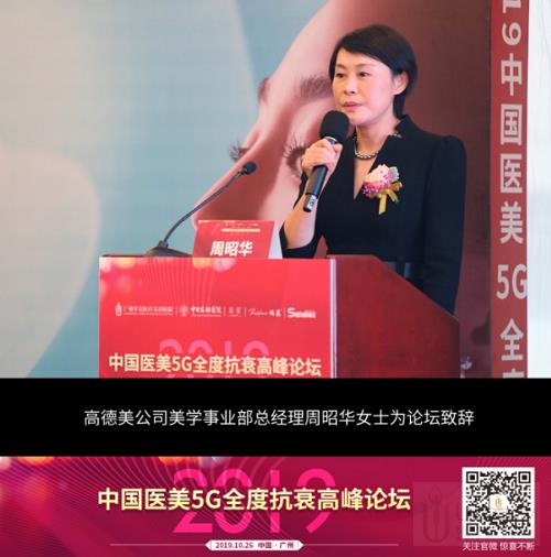 而论坛会的主办方——大会主席/中国中西医结合学会医学美容专业委员会鼻分会会长曾高主任和协办方高德美公司美学事业部总经理周昭华女士也先后在本次活动上发表致辞,对广州华美整形多年来在医学抗衰领域取得的成就表示肯定和认可,也对华美整形的未来和发展寄予了高度厚望。
