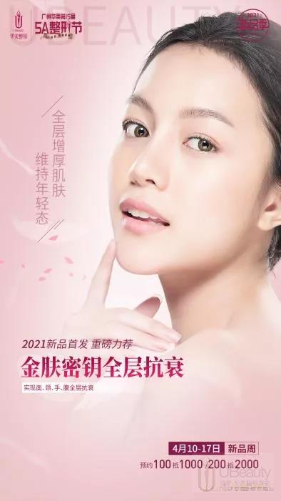 今年2021广州华美夏季新品发布会共发布8款新品,包含五官美学系列、整形年轻化系列、注射年轻化系列、紧肤抗衰系列、美白嫩肤系列,口腔健康美学系列,结合了华美27年来数百名医生经验,提炼了众多女性真实变美案例,将技艺与创新相结合,包括U美眼龄青春态、无痛肋骨鼻、U美再生脂肪填充术、无痛即白嫩滑光、金肤密钥全层抗衰、轩昂眉、悬浮脱毛、士卓曼高端种植牙,八款匠心臻品,为求美者带来多方位、覆盖全生命周期的美丽管理。
