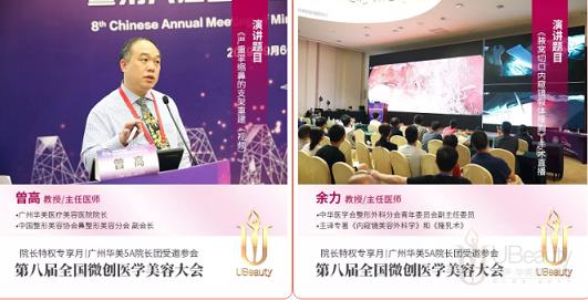 广州华美作为医美行业领军机构,25年来,除引进先进的医疗设备及新项目,同样非常注重医师技术水平的提升。大会上,广州华美院长【曾高主任】、内窥镜隆乳大咖【余力主任】、自体软骨隆鼻大咖【邓裴主任】、面部年轻化大咖【陈敏亮主任】、面部年轻化医师【谢宏彬主任】、广州华美外科副院长【郝永生】、广州华美外科技术院长【张明兴】、广州华美外科技术院长【李文锋】等医师带来精彩绝伦的主旨课程演讲,把参会医师带入探索医学美容奥秘的神奇之旅,同时,广州华美5A院长团将广州华美新品【U美维密胸5.0】、【U美真高鼻】、【U美脂肪童颜针】、【U美欧若拉定制美眼术2.0】推向全行业,获得中国整形美容协会的高度认可,也获得来自各地医师学者的高度赞誉!